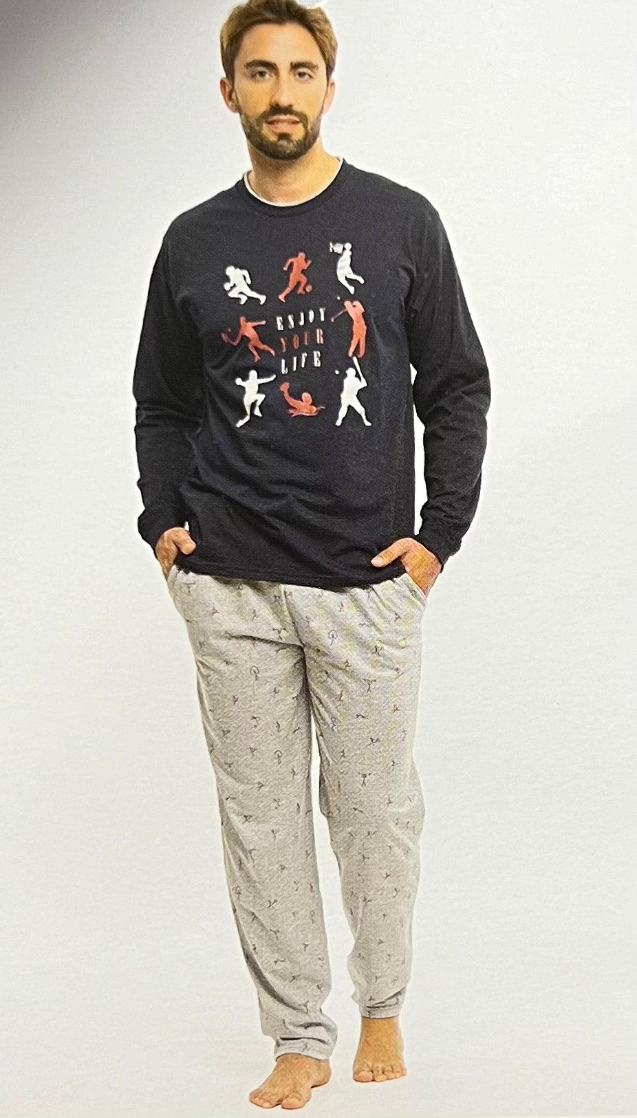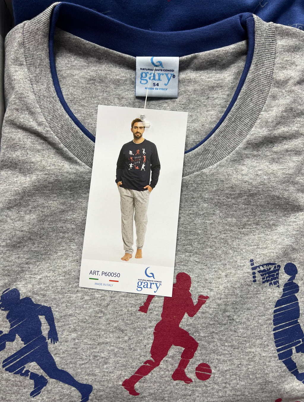 Pigiama uomo Jersey, manica lunga girocollo con elastico ai polsi e pantalone a contrasto con tasche e senza polsini della Gary.